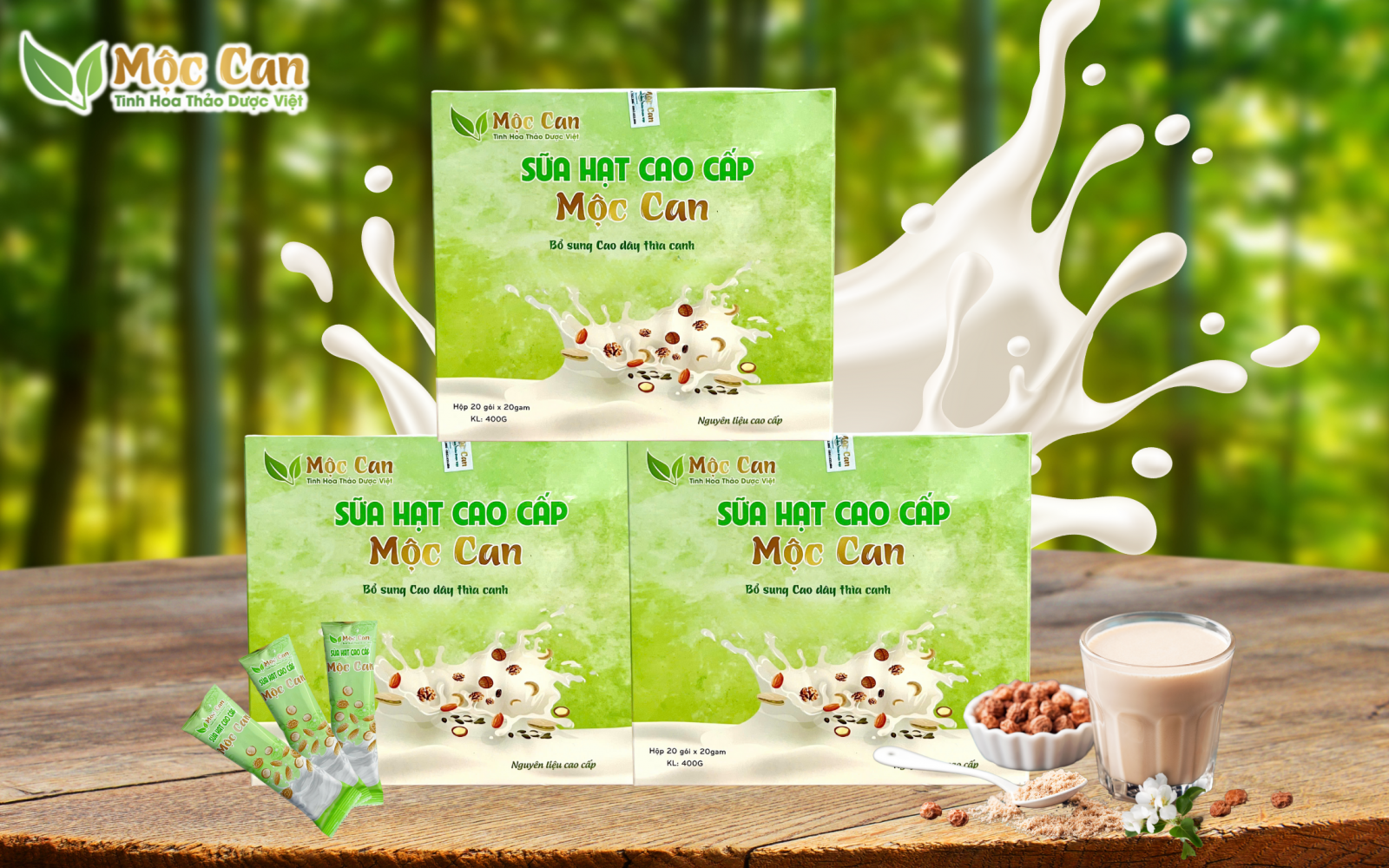 Cho 1 gói sữa hạt cao cấp Mộc Can vào ly đánh tan bột trong khoảng 50ml nước nguội, thêm 100ml nước nóng khuấy đều, thêm đường, sữa đặc, sữa tươi tùy ý